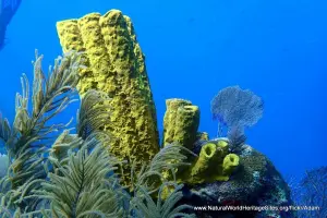 The most important marine habitat is the submarine prairie of Posidonia oceanica, a type of seagrass that is found only in the Mediterranean basin and is under extreme threat from pollution in other parts of its range. These prairies serve as a hatchery and nursery for many species of marine fish, thereby helping to sustain commercially-important fish stocks outside the site. The ecosystem has remarkably high biological productivity generating about 21 tons/year of biomass, similar to that of a tropical forest. In addition to the seagrass prairies the site includes two other important marine communities, one based on the colonial coral (Cladocora caespitosa, with its association of 220 other species) and the other formed by the colonial sea squirt (Ecteinascidia turbinata, which produces a chemical valuable in the treatment of cancers). The seas around the site sustain a population of Mediterranean monk seals, one of the twelve most endangered mammals in the world. The terrestrial part of the site includes coastal lagoons and saltpans which are important as a major resting area for migratory waterfowl, and there are large breeding colonies of sea birds elsewhere, including Balearic, Yelkouan and Cory’s shearwaters, storm petrels, Audouin’s and Caspian gulls.