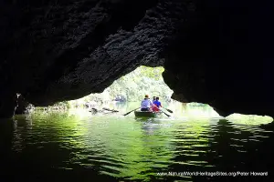 Location and Values: Phong Nha-Ke Bang National Park covers a substantial area of forested mountains along the border with Laos in central Vietnam. Its underlying geology is complex, and includes substantial areas of limestone where some of the world’s largest caves are found. There are some 300 known caves, including Son Doong (‘Mountain River Cave’) which is thought to be the world’s largest cave passage. Approximately 200 km of underground passages had been surveyed and mapped by early 2017 (including 57 new caves discovered in 2016 alone), and further exploration is likely to reveal many more. It is also an area of great biodiversity value, with over 2,700 vascular plant species and 800 vertebrates recorded. These include several large mammals only discovered for science in the 1990s, such as the critically endangered Saola. The fauna includes many species of endemic cave animals, such as blind white fish, and no fewer than four threatened primate taxa that are endemic to the small Annamite mountains region, namely the Hatinh langur, black Hatinh langur, red-shanked douc langur and white-cheeked gibbon.